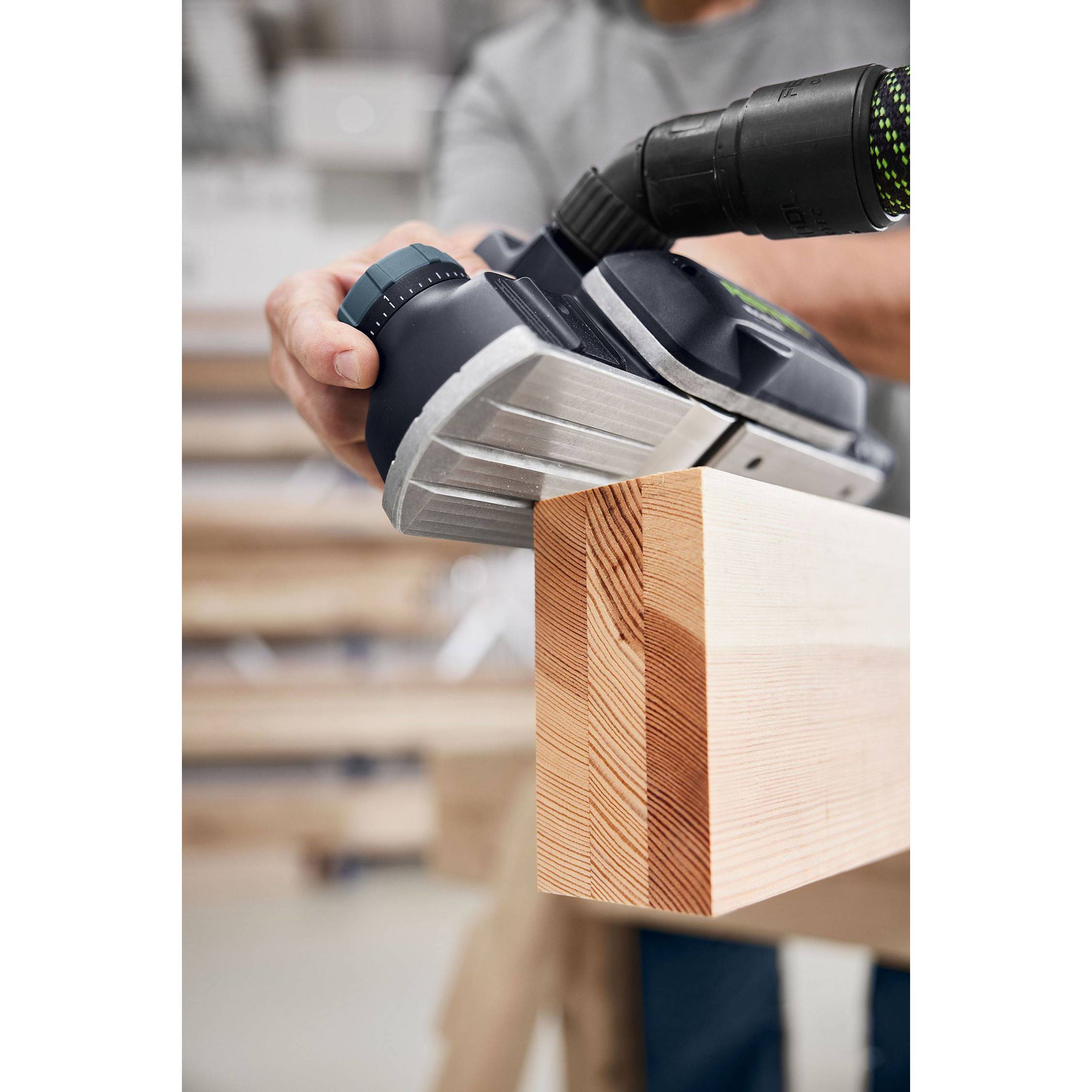 Ideal für das schnelle Erstellen von präzisen und langen Fasen an Balken und Kanthölzern dank der abnehmbaren Fasensohle
