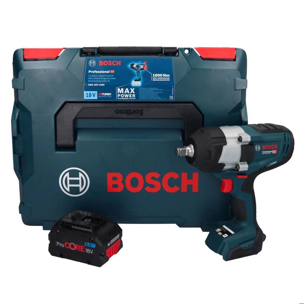 Bosch GDS 18V-1000 Professional Akku Drehschlagschrauber 18 V 1000 Nm BITURBO Brushless + 1x ProCORE Akku 5,5