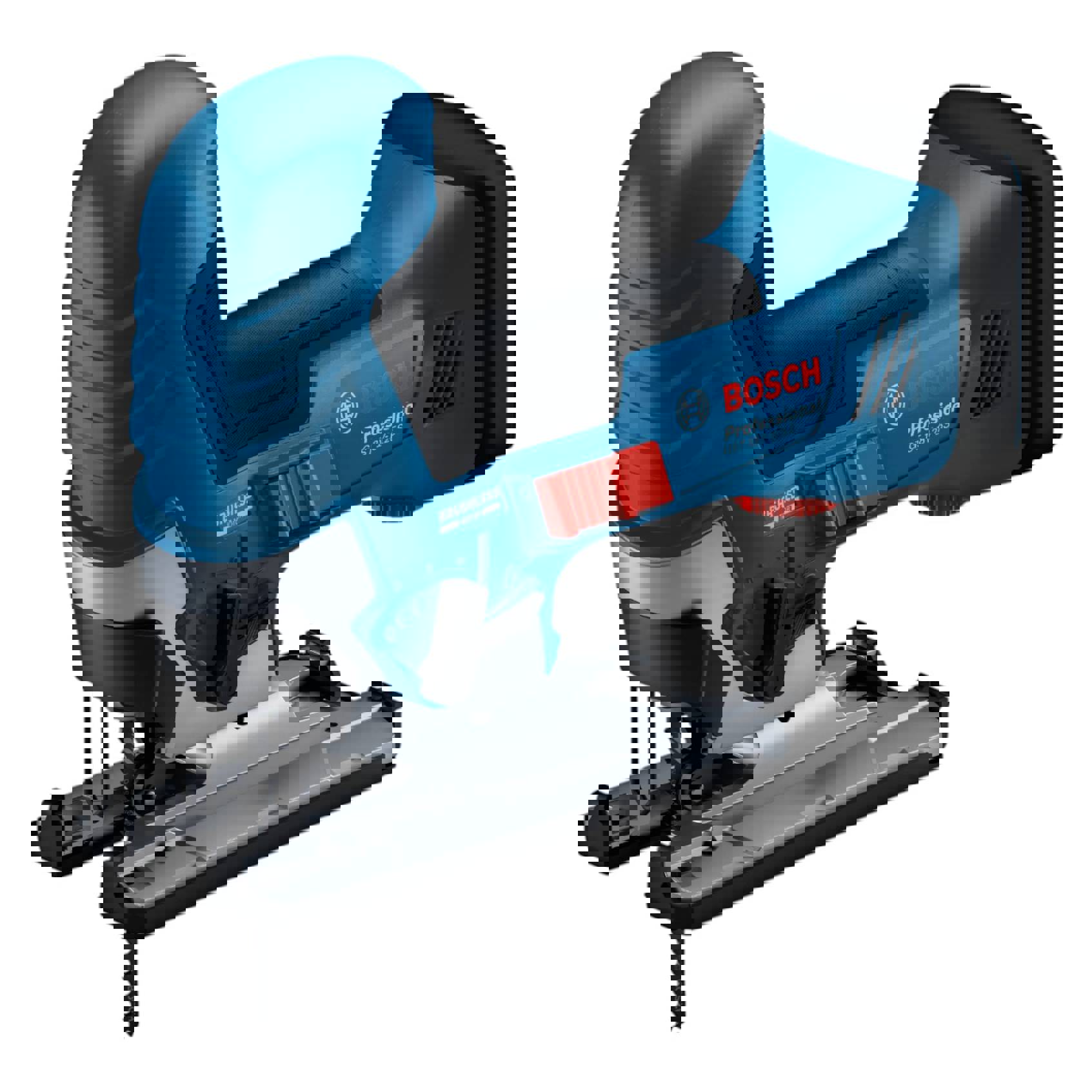 Die Bosch GST 18V-125 S Professional Akku Stichsäge überzeugt durch ein robustes Design und einen leistungsstarken bürstenlosen Motor, der eine ausgezeichnete Laufzeit und eine längere Lebensdauer des Werkzeugs gewährleistet. Sie bietet ein herausragendes Preis-Leistungs-Verhältnis in ihrem Segment und ist eine zuverlässige Lösung für verschiedene Anwendungen. Mit einem Stabgriff ausgestattet, fokussiert die Säge auf wichtige Kernfunktionen wie den SDS-Sägeblatthalter, eine integrierte LED, einen 4-stufigen Pendelhub, eine Staubblasfunktion und eine Drehzahlvorwahl. Diese Funktionen sorgen für eine präzise und effiziente Nutzung, egal ob du Rund- oder Querschnitte in Massivholz, Spanplatten oder Holzverbundwerkstoffen machst, oder auch dickere und härtere Materialien bearbeitest. Mit einem Adapter kann die Säge auch an Führungsschienen verwendet werden, was die Genauigkeit weiter erhöht. Sie ist außerdem kompatibel mit einer externen Staubabsaugung, um eine saubere Arbeitsumgebung zu gewährleisten, und arbeitet mit allen Bosch Professional 18V-Akkus sowie Ladegeräten aus dem Professional 18V System und der markenübergreifenden AMPShare Akku-Allianz. Die Fußplatte kann für Neigungsschnitte auf einen Winkel von bis zu 45° eingestellt werden, und zum Schutz empfindlicher Werkstücke wird die Säge mit einer abnehmbaren Kunststoff-Abdeckhaube geliefert. Die GST 18V-125 S Professional ist die ideale Wahl für präzises und komfortables Arbeiten in verschiedenen Materialien und für verschiedene Anwendungen.