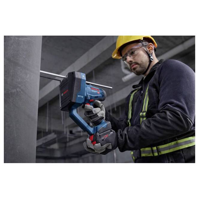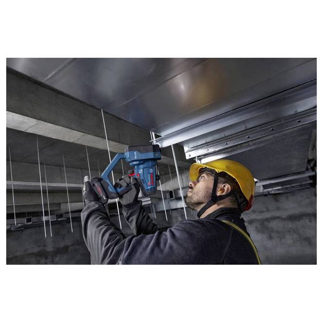 Akku-Gewindestangenschneider, Der Hochleistungs-Gewindestangenschneider GGC 18V-12 Professional von Bosch liefert gratfreie Schnitte, ohne dass eine Nachbearbeitung zum Aufschrauben von Muttern erforderlich ist. Das Werkzeug schneidet komfortabel Gewindestangen bis M12 in Stahl und M10 in Edelstahl und eignet sich damit dank seiner optimal ausbalancierten Konstruktion ideal für Überkopf- und stationäre Arbeiten. Darüber hinaus bietet es mit seinem speziellen Scherenmechanismus, der für funkenfreies Schneiden sorgt, einen hohen Anwenderschutz. Es wird mit einem Arbeitslicht geliefert, das die Sicht auf die Schnittlinie verbessert. Der Bosch GGC 18V-12 Professional ist zum Schneiden von Gewindestangen aus Stahl und Edelstahl geeignet. Mehrfach Stanzwerkzeuge M6-M12 (2 608 001 200). L-BOXX 162 (1 600 A03 8TU). L-BOXX-Einlage