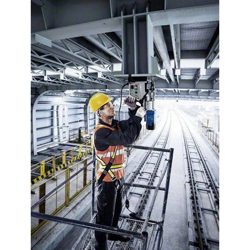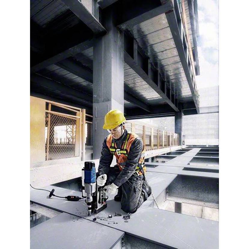 Bohrmaschine GBM 50-2. Die ideale Lösung für präzises, effizientes und sicheres Bohren von Metall. Belastungsanzeige verhilft zu langer Werkzeuglebensdauer. Service-Display informiert über notwendige Wechsel der Kohlebürsten. Lasertechnologie zur schnellen Erfassung. Leistungsstarker Motor für präzises und effizientes Bohren, durch System zur Abschaltung der Stromversorgung höhere Sicherheit. Starke Magnetkraft ermöglicht stabile Bohrungen in alle Richtungen. Belastungsanzeige, Drehzahlwählrad, 2-Gang-System, 1.200-W-Motor mit Sanftanlauf und Wiederanlaufschutz. 14.000 N Magnetkraft und Fehlerstrom-Schutzeinrichtung (Portable Residual Current Device, PRCD). System zur Abschaltung der Stromversorgung zur Vermeidung von Stromschlägen. Umkehrfunktion und flexibler Kühlbehälter.
