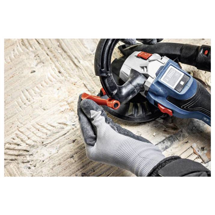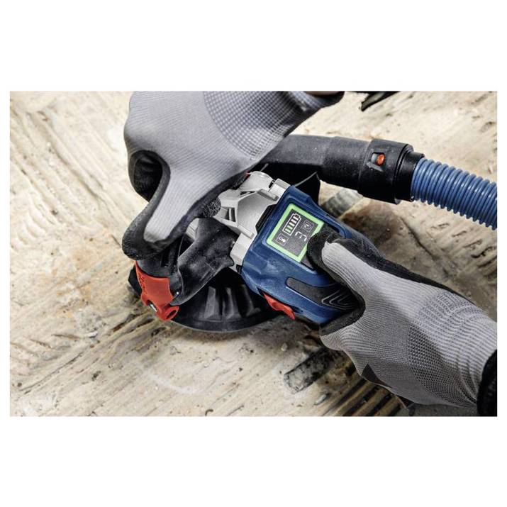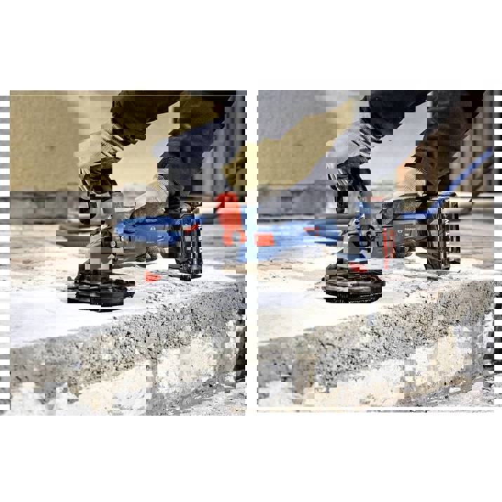 Betonschleifer GBR 18V-15 S, Der Betonschleifer GBR 18V-15 S Professional von Bosch bietet kabellose Effizienz, ohne Kompromisse bei der Leistung einzugehen. Seine bürstenlose Motortechnologie sorgt für eine hervorragende Abtragsleistung. Dank des drehbaren Zusatzhandgriffs sind enge Stellen mit diesem Werkzeug leicht zu erreichen. Darüber hinaus ist bündiges Schleifen in Randnähe mit dem beweglichen Schutzhaubenelement mühelos möglich. Dieser Betonschleifer liefert dank der Drehzahleinstellung über HMI professionelle Ergebnisse auf einer Vielzahl von Materialien. Und er ist mit Funktionen wie KickBack Control, einer Auslaufbremse und Drop Control auf den Anwenderschutz ausgelegt. Der Betonschleifer Bosch GBR 18V-15 S Professional ist ideal zum Trockenschleifen, Entgraten und Glätten von Materialien wie Beton, Stein, Estrich und Marmor. Außerdem ist er zum Entfernen von Klebstoffresten und Schutzbeschichtungen auf mineralischen Untergründen geeignet. Er ist kompatibel mit 125 mm Diamant-Topfscheiben und herkömmlichen Staubsaugern und bietet dank der Click & Clean Schnittstelle eine einwandfreie Staubabsaugung. Er ist kompatibel mit dem Bosch Professional 18V System und mit der markenübergreifenden AMPShare Akku-Allianz. Der GBR 18V-15 S verfügt über eine leistungsstarke bürstenlose Motortechnologie und Funktionen wie Wiederanlaufschutz und Sanftanlauf.