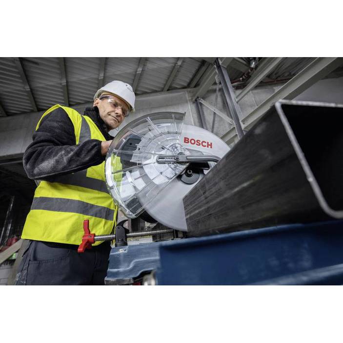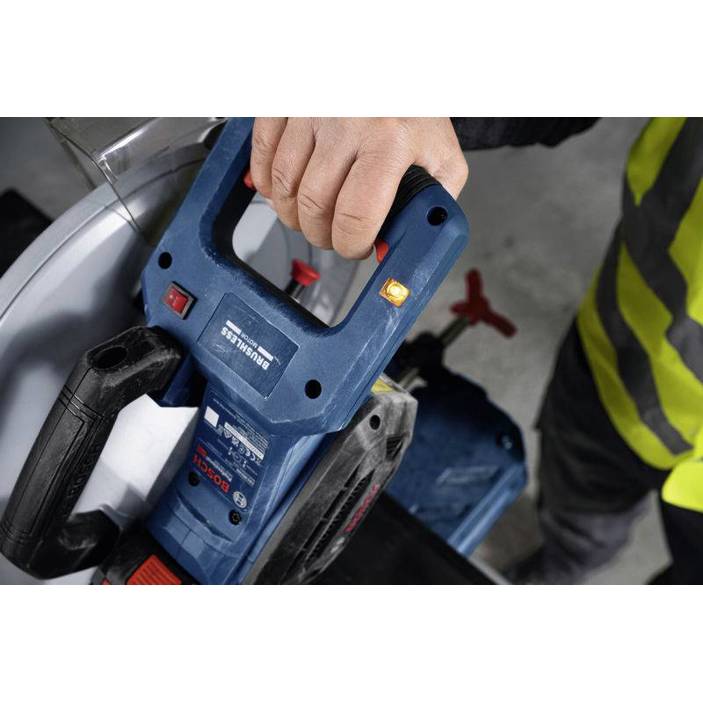 Metalltrennsäge GCD 18V-355, Der erste kabellose 18V-Trockenschneider, der mit einem einzigen Akku betrieben wird, schneidet Metall, wo immer du gerade bist. Dank der präzisen Laserschneidlinie kann das Werkstück einfach positioniert und der Schnitt ausgerichtet werden. Der schlüssellos verstellbare Anschlag ermöglicht eine perfekte Positionierung des Werkstücks – schnell und einfach. Die Überlastungsanzeige hilft, übermäßige Schubkräfte zu vermeiden und die Lebensdauer von Akku und Sägeblatt zu verlängern. Der GCD 18V-355 Professional schneidet Metall kalt, schnell und sauber mit minimaler Funkenbildung. Der GCD 18V-355 Professional ist ideal zum Schneiden aller Arten von Metallwerkstoffen und Profilen. Volle Systemkompatibilität: Mit einem speziellen Adapter kann der GCD 18V-355 Professional auf alle Bosch GTA Gehrungssägenständer montiert werden. Das Gerät wird mit einer Rohrspannbacke für sicheres und effizientes Spannen und große Schnittkapazitäten von max. 127 mm vertikal und max. 194 mm horizontal geliefert. Karton