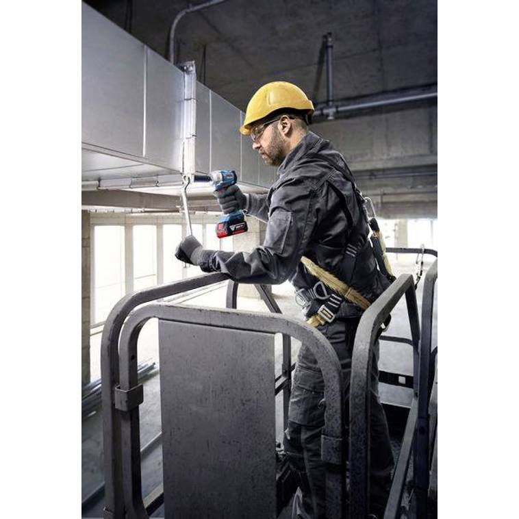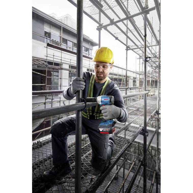 Akku-Drehschlagschrauber GDS 18V-350, Es ist zwar sehr praktisch, kleine Werkzeuge bequem mitnehmen zu können, aber letztlich verlierst du Zeit wegen ihrer begrenzten Leistung. Mit dem Bosch GDS 18V-350 erhältst du einen intuitiven Drehschlagschrauber mit einem kompakten und hocheffizienten bürstenlosen Motor. Dank seines kleinen Kopfes (131 mm) und eines schlanken, weichen Griffs ist er leicht anwendbar, sogar an engen Stellen. Wähle zwischen drei verschiedene Drehmomentstufen und schalte die Abgabeleistung mit einem Drehmoment von 85 Nm auf 200 Nm bis zu hohen 350 Nm hoch, um mit Schrauben in verschiedenen Größen oder rostigen Schrauben zu arbeiten und dabei Schäden zu vermeiden. Für Tätigkeiten in den Bereichen Metallverarbeitung, HVAC, Gerüstbau oder Kfz-Reparatur ist dies das handliche Werkzeug der Wahl. Schrauben lassen sich mühelos in Gewinde eindrehen. Dieser Drehschlagschrauber eignet sich auch für anspruchsvolle Arbeiten wie die Befestigung von Maschinenschrauben. 2 x Akku GBA 18V 4.0Ah (1 607 A35 0PP). Schnellladegerät GAL 18V-40 Professional (2 607 226 251). L-BOXX 136