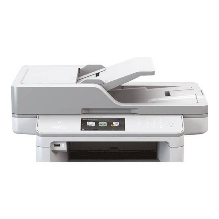 Das MFC-L6800DWT ist mit einem Duplex-ADF mit Dual-CIS-Scaneinheit ausgestattet. Dokumente, die in diesen automatischen Vorlageneinzug eingelegt werden, können damit gleichzeitig von oben und unten eingescannt werden. Das manuelle Umdrehen eines beidseitig bedruckten Dokumentes entfällt somit. Dies spart Zeit und erleichtert den Arbeitsablauf ungemein. Somit kann das MFC alle Funktionen (Drucken, Kopieren, Scannen und Faxen) auch Duplex ausführen. Das 12,3 cm Touchscreen-Farbdisplay erleichtert die Installation und Administration des MFCs erheblich. Scannen Sie darüber in bzw. Drucken Sie Dokumente aus Cloud-Diensten, wie Box, DropBox, Google Drive & OneDrive. Der Ausdruck der ersten Seite in weniger als 7,5 Sekunden und eine hohe Druckgeschwindigkeit von bis zu 46 Seiten/Min. sorgen dafür, dass Sie keine Deadline verpassen. Ideal bei hohen Druckvolumen oder einer Vielfalt zu nutzender Formate: das MFC-L6800DWT bietet bereits 2 x 520 Blatt Papierkassetten und eine 50 Blatt MF-Zufuhr im Lieferumfang. Das MFC-L6800DWT ist mit einem integrierten NFC-Kartenleser ausgestattet, der mit bestehenden Authentifizierungssystemen genutzt werden kann. Externe Kartenleser lassen sich mittels rückseitigem USB-Anschluss an den Drucker anschließen.