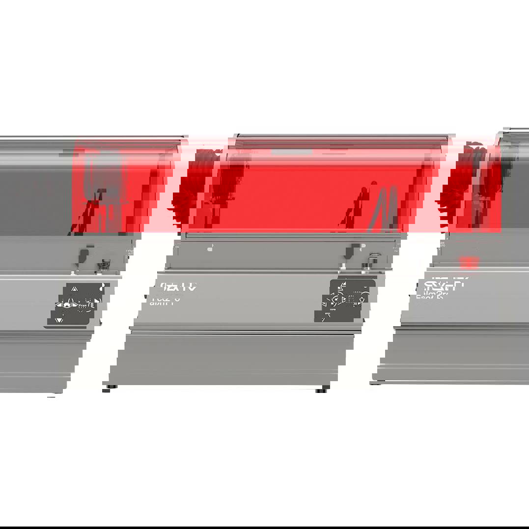 Mit seinem volltransparenten, tiefroten Deckel bietet der Falcon2 Pro eine uneingeschränkte Sicht auf den Arbeitsbereich. Sie können den gesamten Gravurprozess ohne Schutzbrille verfolgen - ästhetisch ansprechend und maximal funktional.