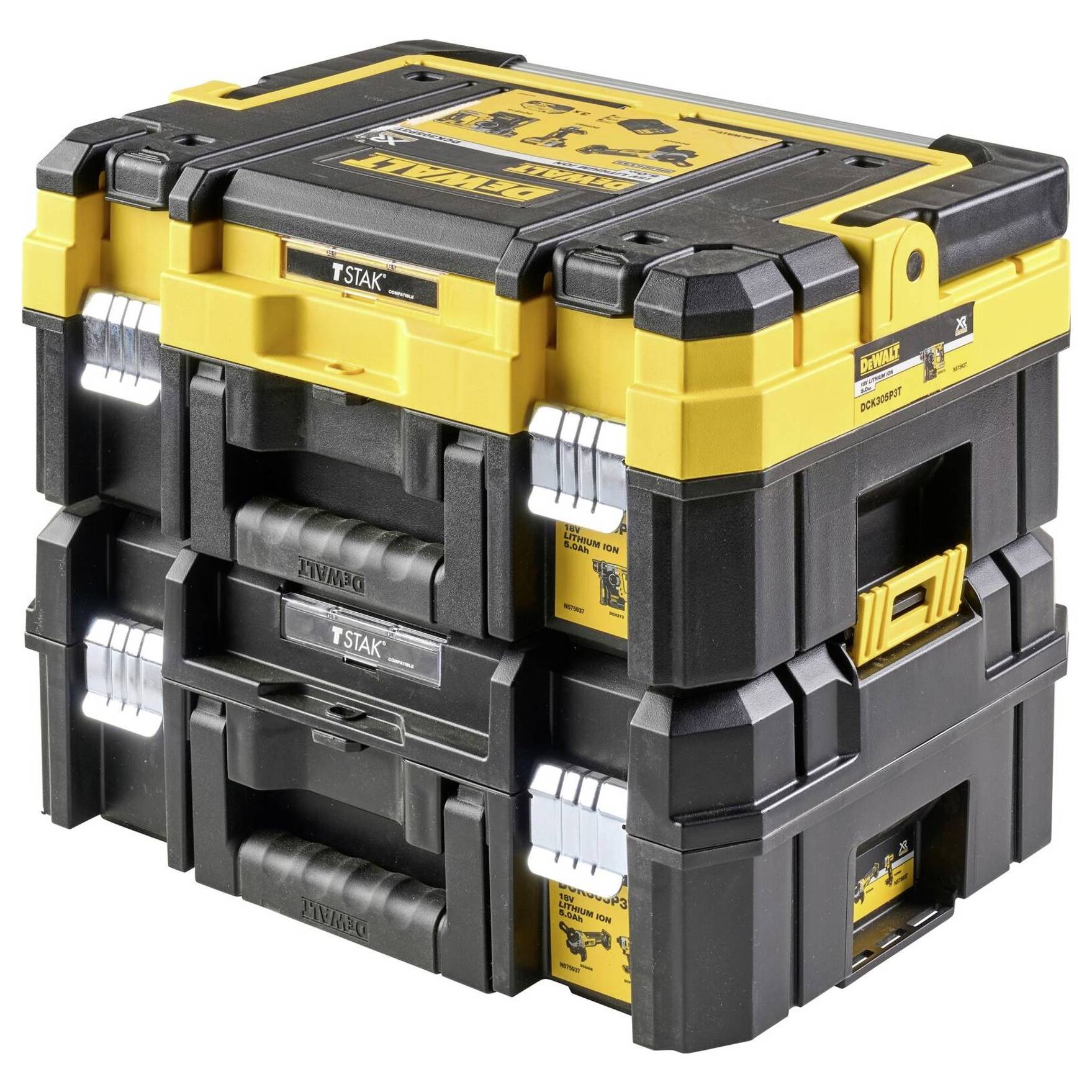 Das Dewalt-Set besteht aus einem Akku-Schlagschrauber, einem Akku-Bohrhammer, einem Akku-Winkelschleifer, drei Akku´s und einem Schnellladegerät.