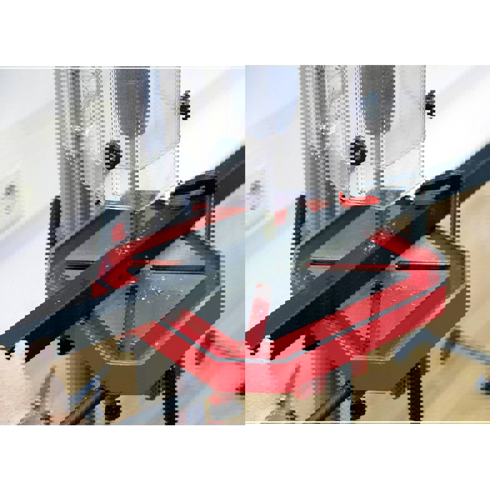 Die Einhell Säulenbohrmaschine TE-BD 750 E ist ein kraftvolles und präzises Werkzeug, das in keiner Werkstatt fehlen sollte. Mit einer maximalen Leistung von 750 Watt lässt sich die Spindeldrehzahl von 450 bis 2.500 Umdrehungen pro Minute regulieren. Die Geschwindigkeit ist dabei stufenlos einstellbar, und das ganz ohne Werkzeug. Eine LCD-Anzeige informiert über die aktuelle Drehzahl. Für angenehmes Arbeiten sorgt der laufruhige und geräuscharme Induktionsmotor. Das Schnellspannbohrfutter ist von 1 bis 16 Millimeter mit allen gängigen Bohrergrößen bestückbar. Zudem ist die Einhell Säulenbohrmaschine TE-BD 750 E mit einer MK2-Aufnahme für Morsekegelbohrer ausgerüstet. Optimale Bedingungen bei allen gewünschten Bohrvorgängen bietet der höhenverstellbare sowie neig- und drehbare Bohrtisch, der mit einer Verbreiterung ausgestattet ist. Ein LED-Licht sorgt für optimale Ausleuchtung des Bohrtisches. Die kugelgelagerte Bohrspindel gewährt einen langlebigen Betrieb. Zusätzliche Sicherheit bieten der Notausschalter und der Sicherheitsspindelschutz. Die Ausladung beträgt 152 Millimeter, die maximale Bohrtiefe 80 Millimeter.