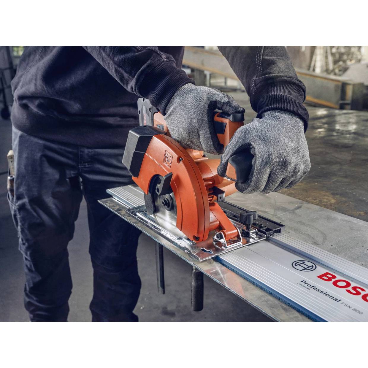 Starke Leistung - geringes Gewicht: 50 % höherer Materialabtrag als herkömmliche Metallhandkreissägen aufgrund des perfekten Zusammenspiels von bürstenlosem Motor, ProCORE Akku und optimal abgestimmtes Sägeblatt bei nur 3 kg Eigengewicht.-Gehäuse und Schutzhaube aus Aluminiumdruckguss sowie Späneauffangbehälter aus schwerentflammbarem Material für maximale Sicherheit gegen heiße und scharfkantige Metallspäne. Dabei immer freie Sicht auf die Schnittlinie dank LED-Arbeitsleuchte.-Schnelles und präzises Sägen von Rohren, Profilen, Metallgittern und Blechen bis 57 mm Schnitttiefe möglich. Gerade, lange Schnitte dank Führungsschienenadapter - kompatibel zu Führungsschienen von Makita, BOSCH, Festool, Mafell.