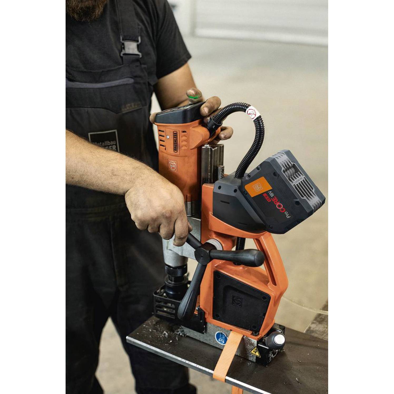 Akku-Universal-Magnet-Kernbohrmaschine bis 35 mm mit Anwenderset|AKBU 35 PMQW 18 V AS Construction-Site 2x 8 Ah Set 3/4 in Weldon / HSS NOVA 50|Das Akku Kernbohr-Universaltalent AKBU 35 PMQW 18 V / 8 Ah AS trifft auf umfangreiches HSS-Kernbohr- und HSS-Cobalt-5%-Spiralbohrzubehör. Perfekt für den Stahl- und Brückenbau.