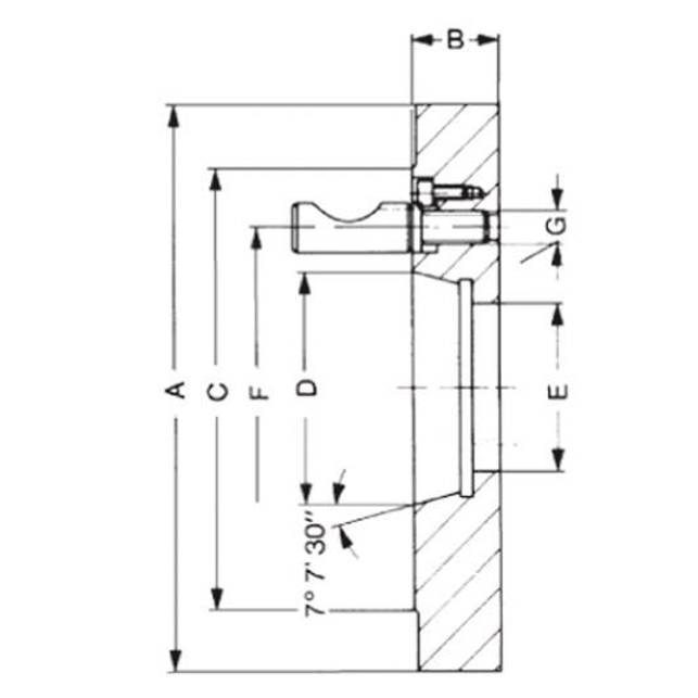 für Drehfutter · aus Stahl · fertig bearbeitet Weitere technische Eigenschaften: · Material: Stahl · B: 26mm · Ausführung: Kurzkegelaufnahme nach ISO 702-2 (DIN 55029) Camlock · D: 139,719mm