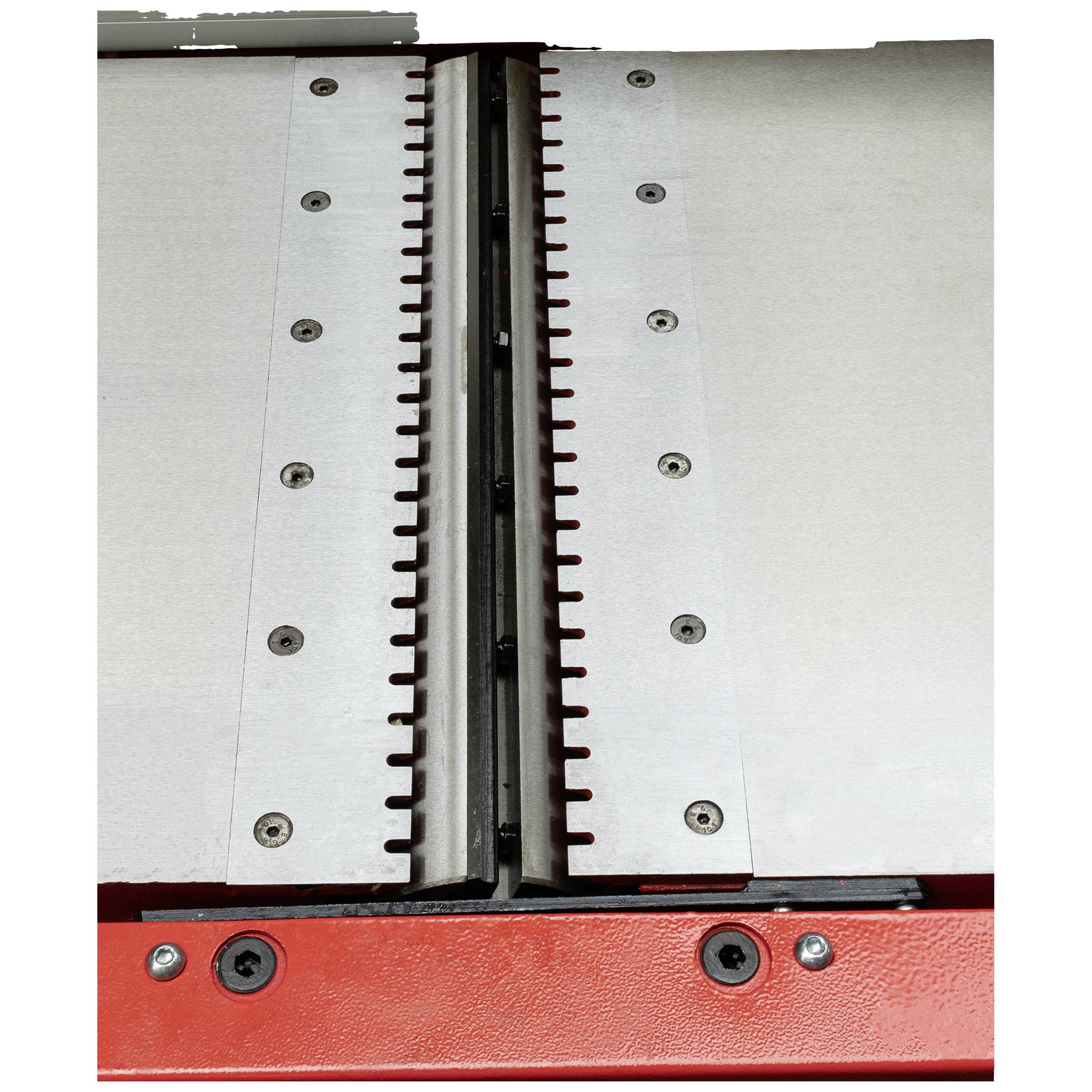 Die HOLZMANN Abricht-Dickenhobelmaschine HOB410PRO mit ca. 410mm Hobelbreite zum Abrichten und Dickenhobeln ihrer schon etwas größeren Bretter. Die schwere Ausführung ergbit ein top Hobelbild. Der Umrüstvorgang von Abricht auf Dickenhobel erfolgt durch die klappbaren Tische problemlos und einfach. Beim Dickenhobeln erfolgt der Vorschub des Brettes mittels dazuschaltbarer Einzugs- und Auszugswalze. Dadurch wird eine konstante Brettgeschwindigkeit und gleichmäßiges Hobelbild ermöglicht. Der Vorschub ist aktivier- und deaktivierbar mittels Hebel.