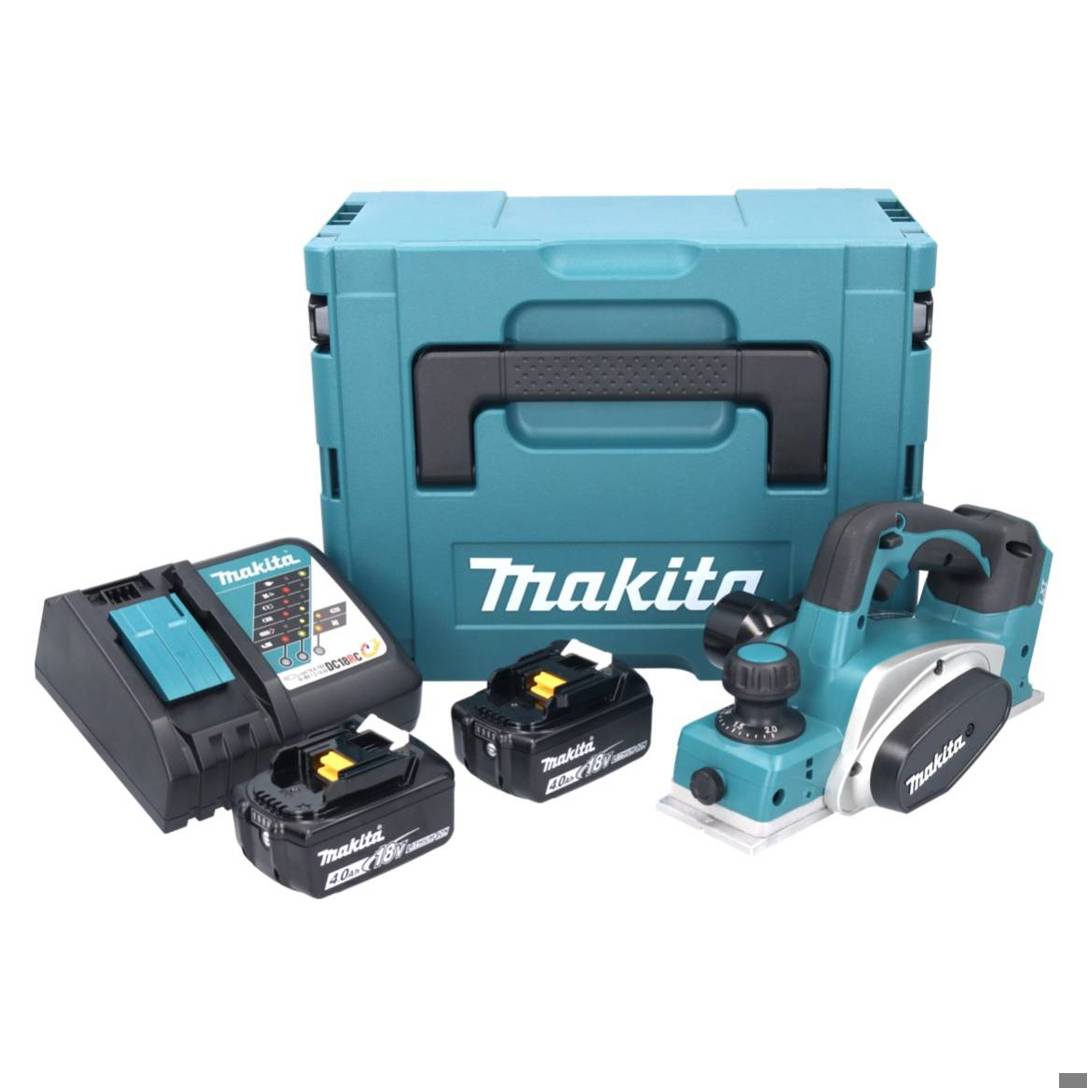Makita DKP 180 RMJ Akku Hobel 18 V 82 mm + 2x Akku 4,0 Ah + Ladegerät + Makpac