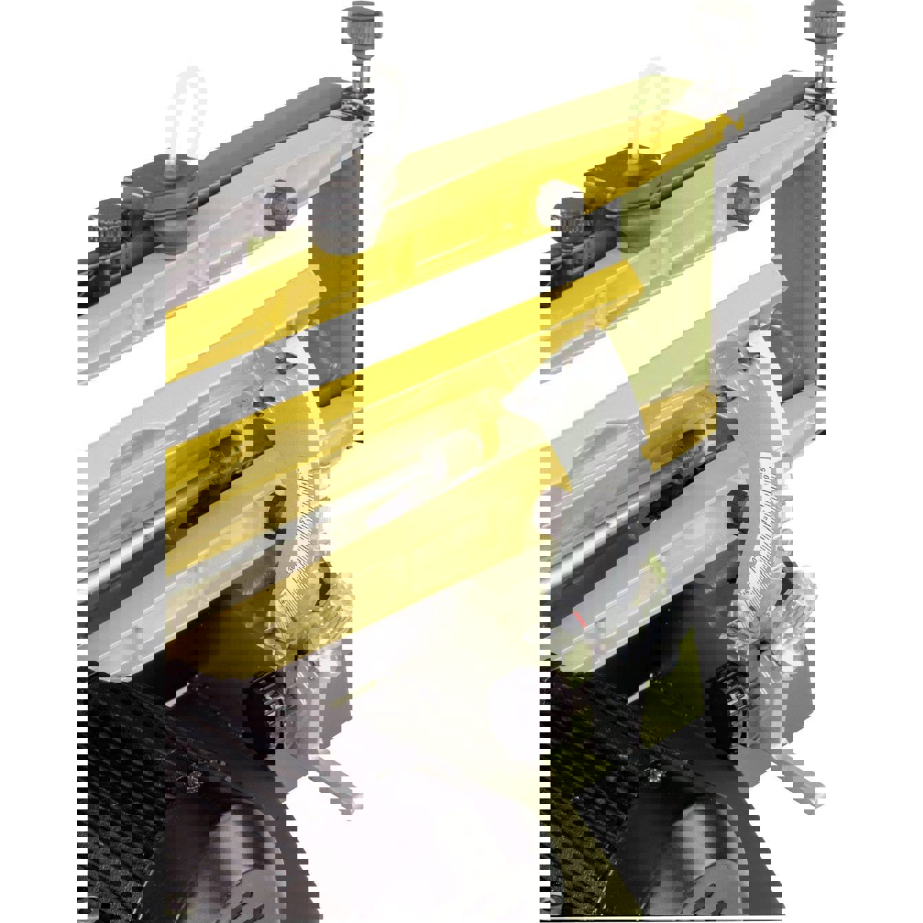 Extrem leichte Sägearme aus Magnesium reduzieren jetzt das Gewicht der bewegten Masse im Vergleich zu Alu-Druckguss um ca. 40%. Dadurch höchste Laufruhe!