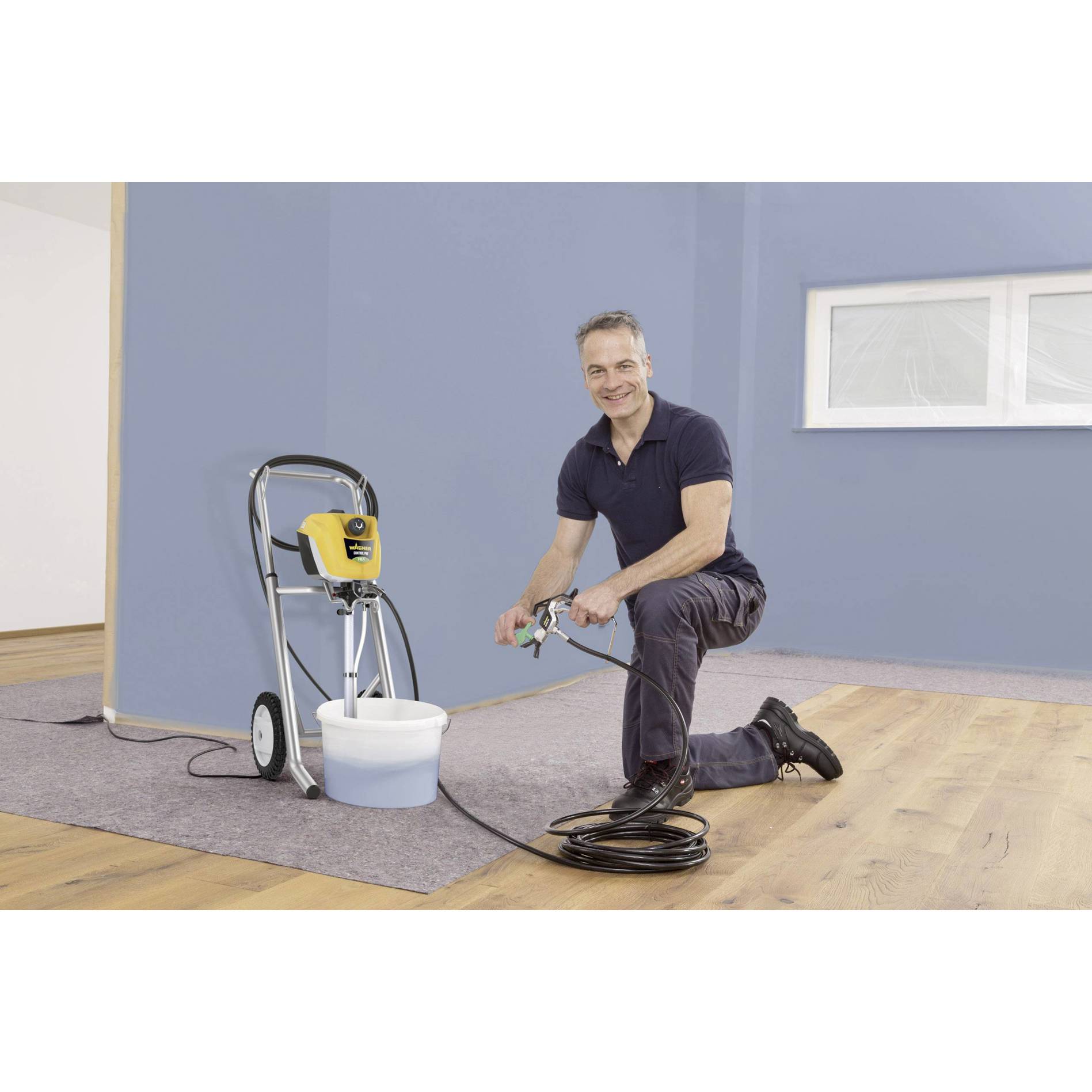 Leistungsfähiges und mobiles Airless Spritzgerät für alle Malerarbeiten auch an großen Objekten für erfahrene Heimwerker, Servicedienstleister sowie Handwerker mit gelegentlichen Einsatz. Ausgestattet mit der High Efficiency Airless Technologie, also reduziertem Druck und einer innovativen Düse, garantiert die Control Pro 350 M einen streifenfreien, perfekt deckenden Farbauftrag. Es können alle lösemittelhaltigen und wasserverdünnbare Lacke, Lasuren und Holzschutzmittel sowie Dispersions- und Latexfarben verarbeitet werden und das mit bis zu 55 % weniger Sprühnebel als beim herkömmlichen Airless Spritzen. Höchster Bedienkomfort bietet auch die hochwertige Airless Pistole mit Zwei-Finger-Abzug und der 15 Meter lange und sehr flexible Schlauch. Der Wagen mit Teleskopgriff spart Platz beim Transport und bei der Aufbewahrung, ermöglicht aber auch einen leichten Arbeitsplatzwechsel.