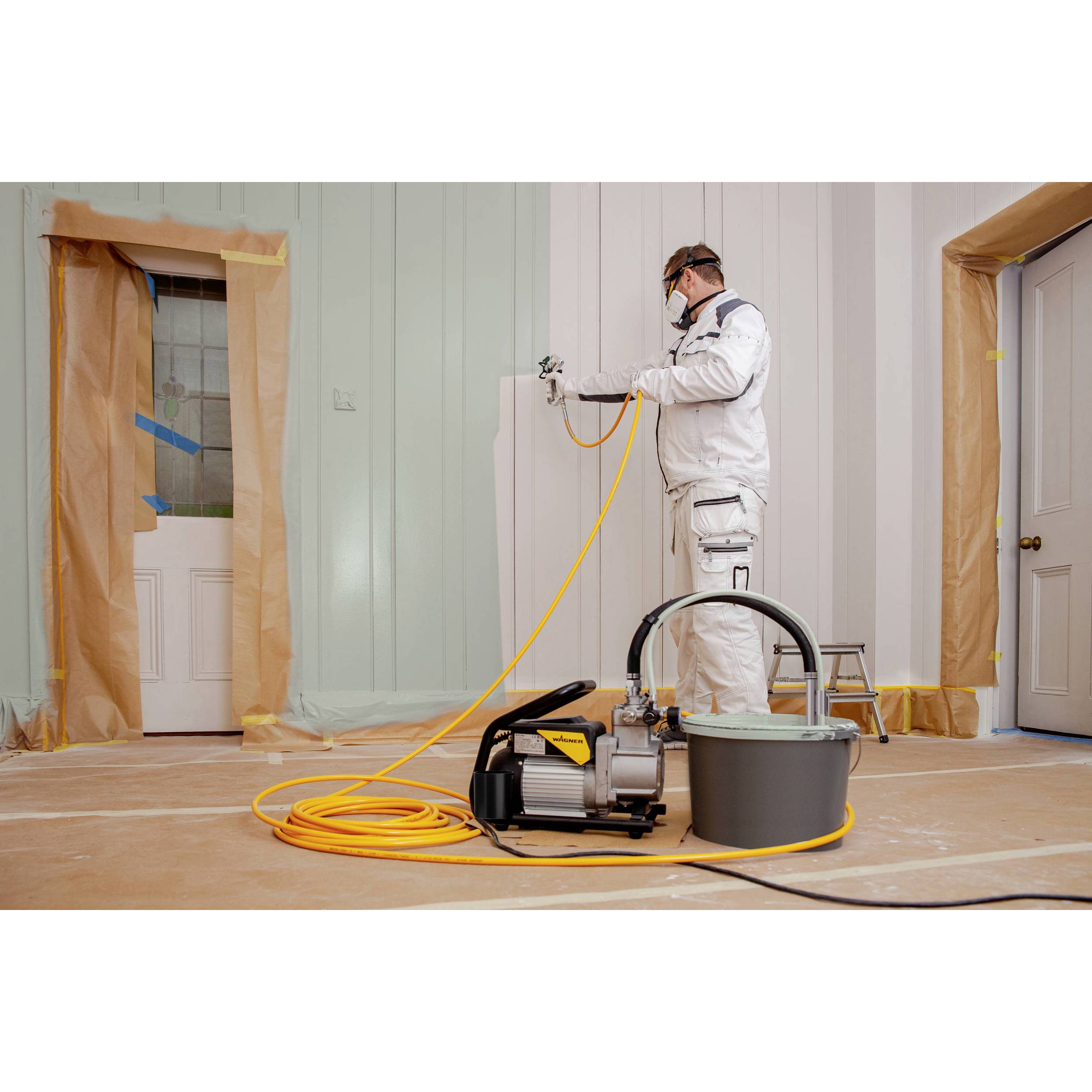 Die SuperFinish 21 Pro ist ein robustes und langlebiges Airless Spritzgerät. Dank der Membranpumpen-Technologie werden dünnflüssige Materialien wie Lacke und Lasuren bis hin zu dickeren Materialien wie Dispersionsfarbe und Fassadenfarbe zuverlässig verarbeitet. Kleinere Projekte zum Beispiel die Lackbeschichtung von Holzdecken, Heizkörpern und Holzfenstern sowie mittelgroße Projekte wie den Auftrag von Wandfarbe werden effizient und unkompliziert realisiert - auch im Altbau oder bei Neubauprojekten.